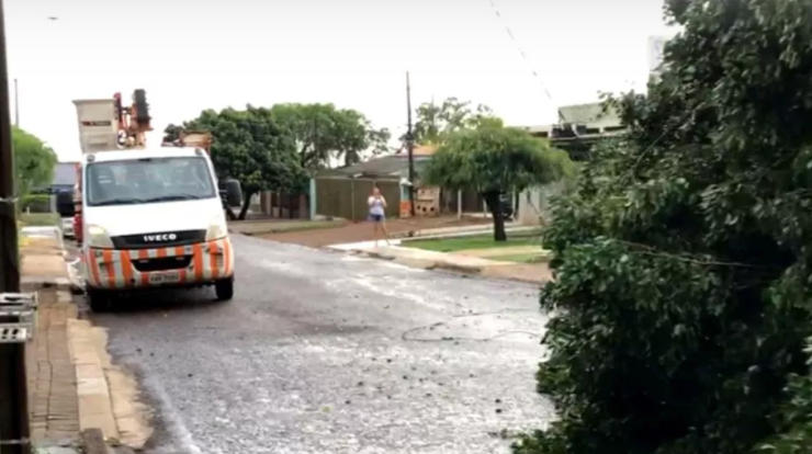 A estação do Simepar registrou rajada de vento de até 70 km/h em Cascavel e diversas árvores caíram na cidade.  Não há registro de feridos.