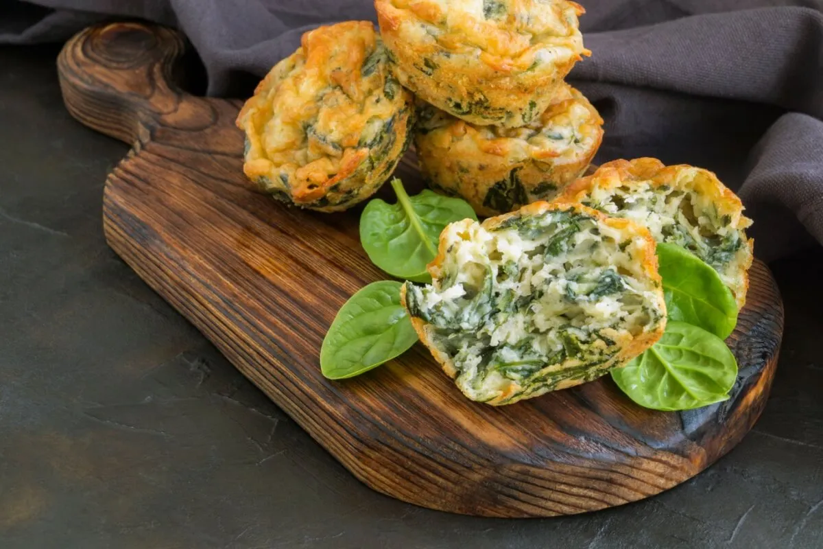 Em água corrente, lave o espinafre, seque bem e pique em pequenos pedaços. Transfira para um recipiente, adicione a cebola, o alho, a farinha de arroz, a fécula de batata, o sal, o curry, o fermento em pó e o azeite e misture até obter uma consistência homogênea. Distribua a massa em forminhas de cupcake untadas com azeite. Leve ao forno preaquecido a 180 °C por 45 minutos. Sirva em seguida.