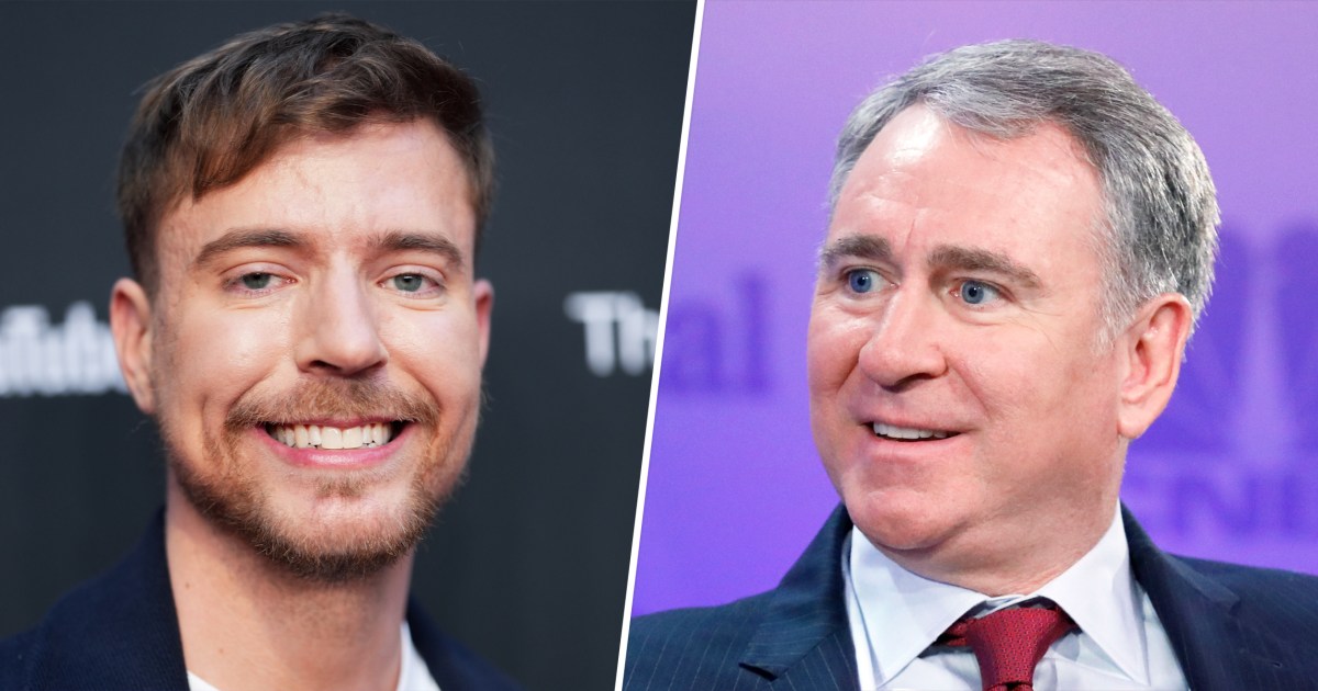 MrBeast pointed to another camera and, smiling, said, “And Ken Griffin. You got a lot of money. Come on, help us out!”