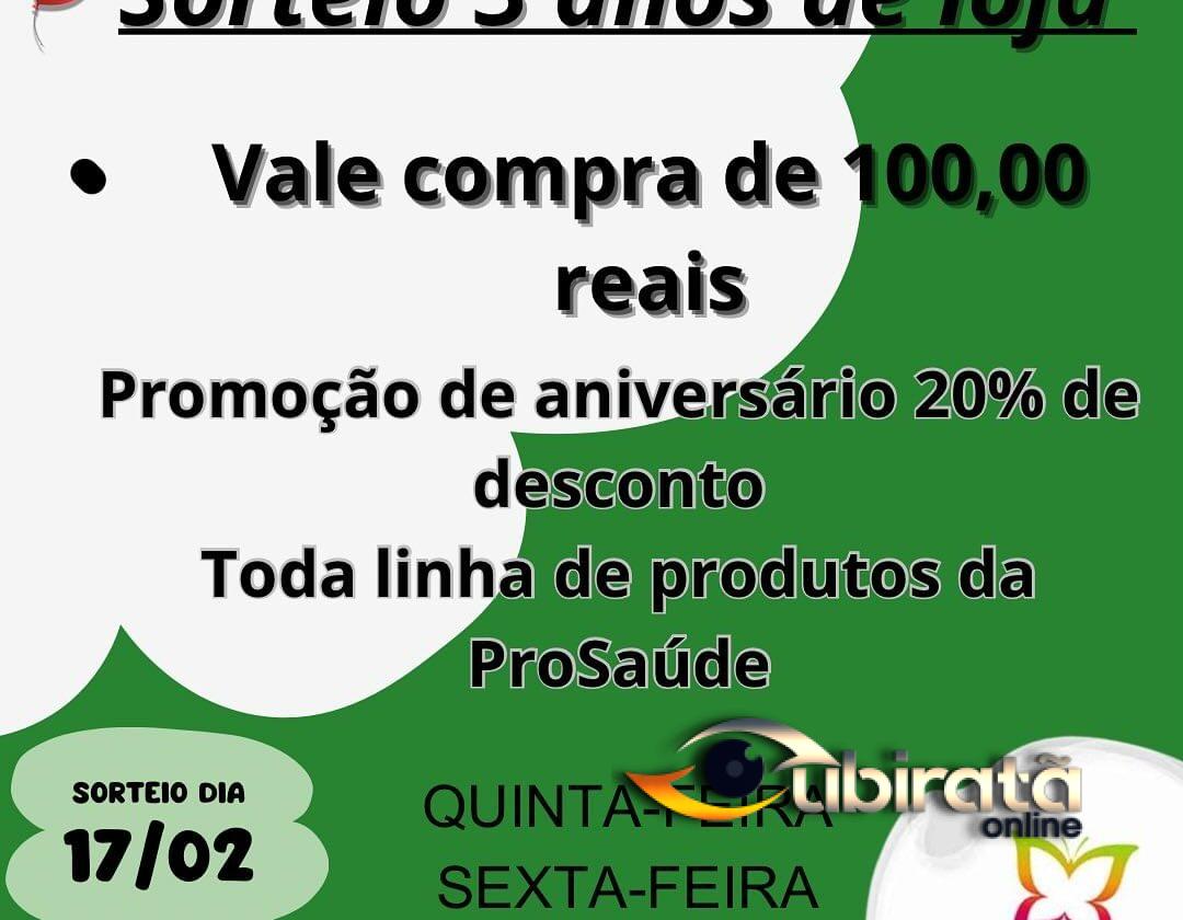 Tá rolando sorteio. Siga o Instagram da loja e veja como participar: @prosaudeubirata