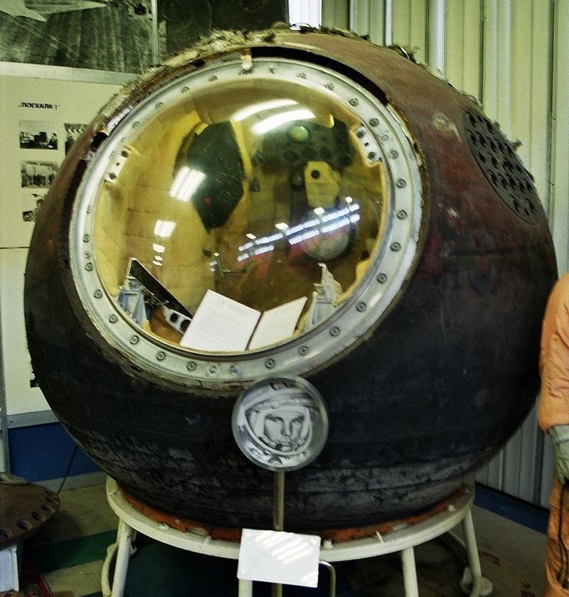 Com apenas 27 anos, Iuri Gagarin a bordo da nave Vostok 1, na qual deu uma volta completa em órbita ao redor do planeta. Esteve em órbita durante 1h48min, a uma altura de 315 km, num voo totalmente automatizado, com uma velocidade aproximada de 28 000 km/h. Pela proeza, recebeu a medalha da Ordem de Lenin.