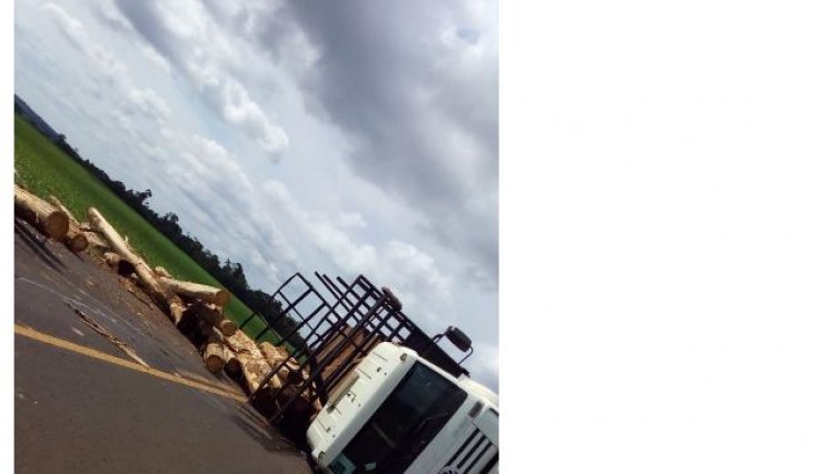 Foi registrado no inicio desta tarde de quarta-feira, dia 11, um acidente tipo capotamento de um caminhão carregado com toras de lenha.