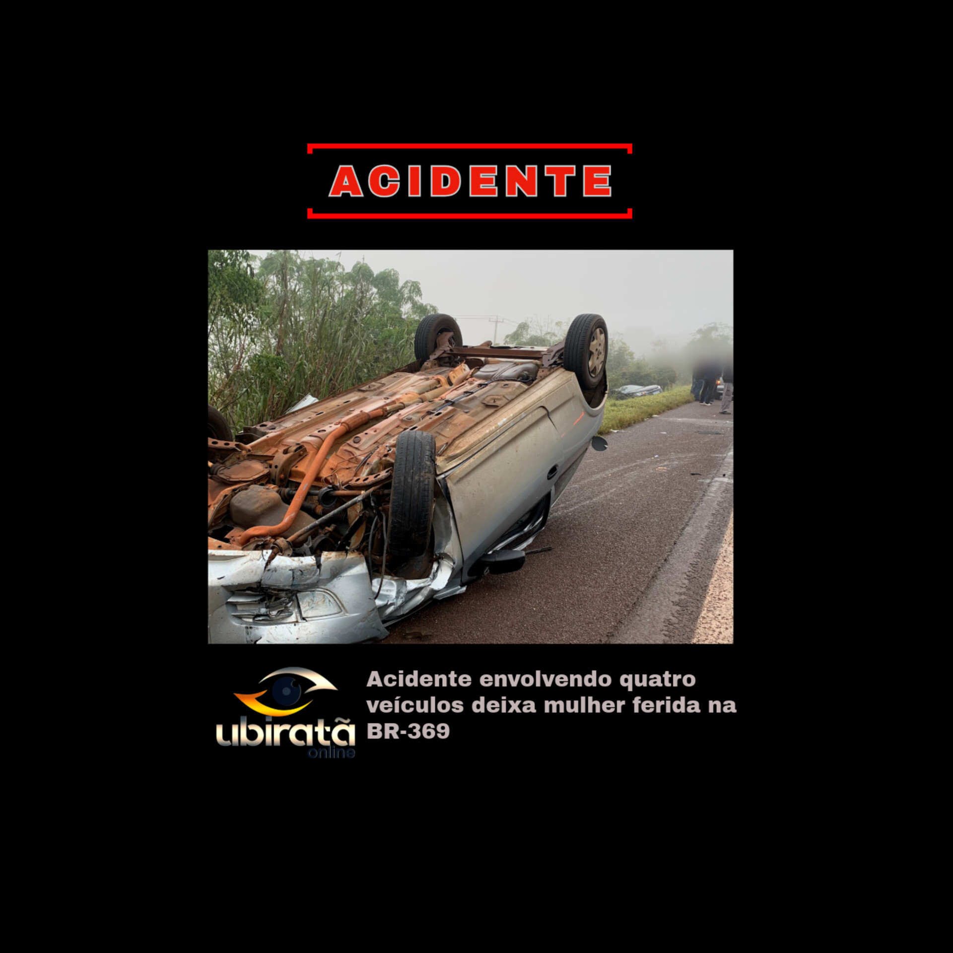 Na manhã desta sexta-feira (27), um acidente envolvendo quatro veículos deixou uma mulher ferida na BR-369, próximo a Cascavel.