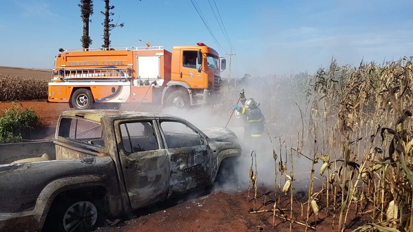 Segundo o proprietário, a caminhonete teve um princípio de incêndio no motor e expandiu rapidamente não havendo tempo de controlar.
