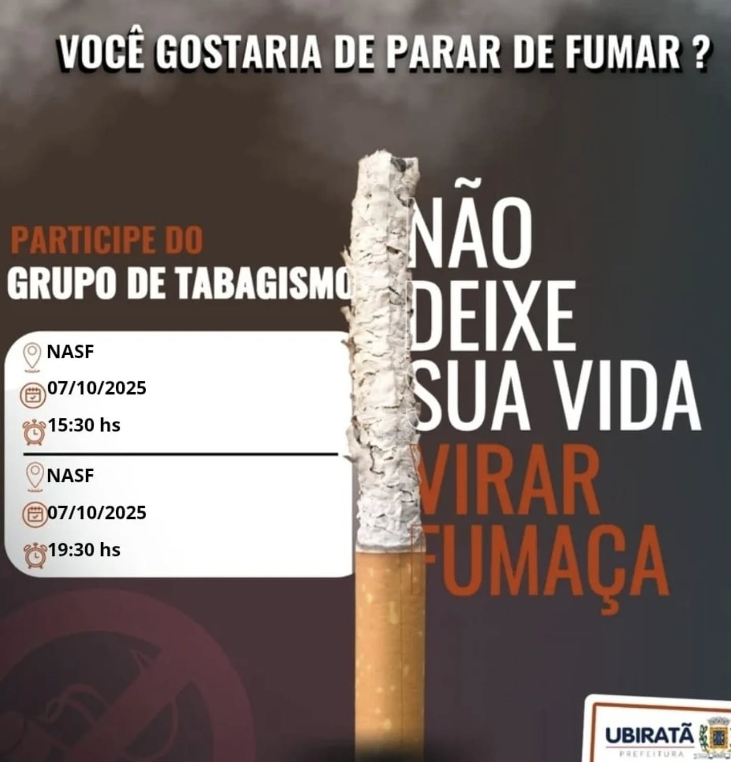 Neste mês de agosto, 12 pacientes participaram do grupo Antitabagismo, conduzido pela equipe multiprofissional da Secretaria de Saúde de Ubiratã. O grupo conta com farmacêutica, fisioterapeuta, nutricionista, psicóloga e atendimento médico, que faz a avaliação e, quando necessário, prescreve medicamentos com acompanhamento farmacêutico.
