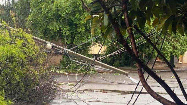 A falta do serviço se deu devido aos danos nas redes elétricas causados pelos fortes ventos e quedas de árvores.