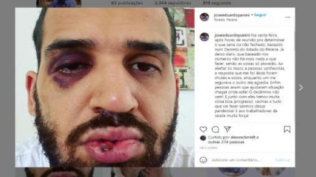 A intolerância tem ganhado proporções assustadoras com o aumento da tensão que envolve todas as notícias relacionadas à pandemia da covid-19. O médico infectologista de Toledo, região Oeste do Paraná, José Eduardo Panini, surpreendeu ao postar um autoretrato no seu perfil do instagram com o rosto todo machucado.