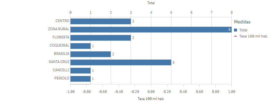 Já no recorte mais recente de 2026, a zona rural lidera com 8 ocorrências, seguida por Santa Cruz (5), enquanto Centro e Floresta aparecem com 3 casos cada. Outros bairros, como Brasília (2), e Coqueiral, Cancelli e Periolo (1 caso cada), completam o cenário.