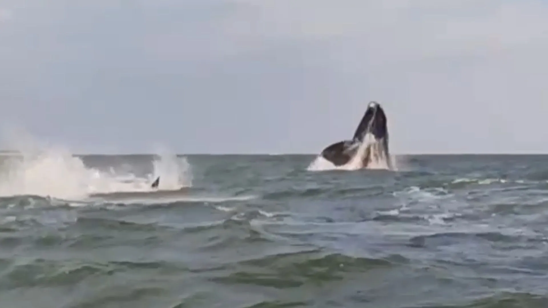 Segundo Camila, pelo vídeo é possível dizer que os saltos e batidas de cauda da fêmea demonstram que ela está incomodada. Conforme a coordenadora, quando a mãe está com o filhote, ela tem um cuidado parental bastante intenso.