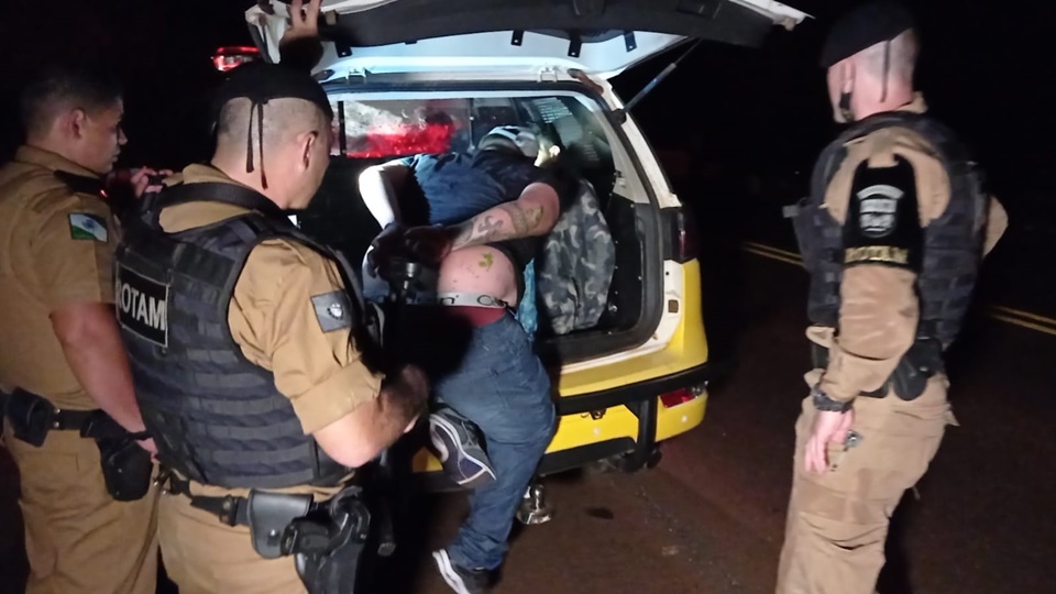 Em uma ação rápida da Polícia Militar, dois bandidos foram presos logo após tomarem uma caminhoneta Hilux de assalto, no centro de Campo Mourão. A ocorrência foi registrada na noite desta quarta-feira, na avenida João Bento.