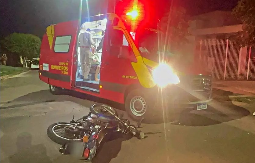 Dois ocupantes de uma motocicleta ficaram feridos após uma colisão contra um carro no Jardim Caravelle, em Umuarama. O acidente aconteceu pouco antes das 19h desta quinta-feira (2) e a equipe do Corpo de Bombeiros/Siate prestou socorro às vítimas.