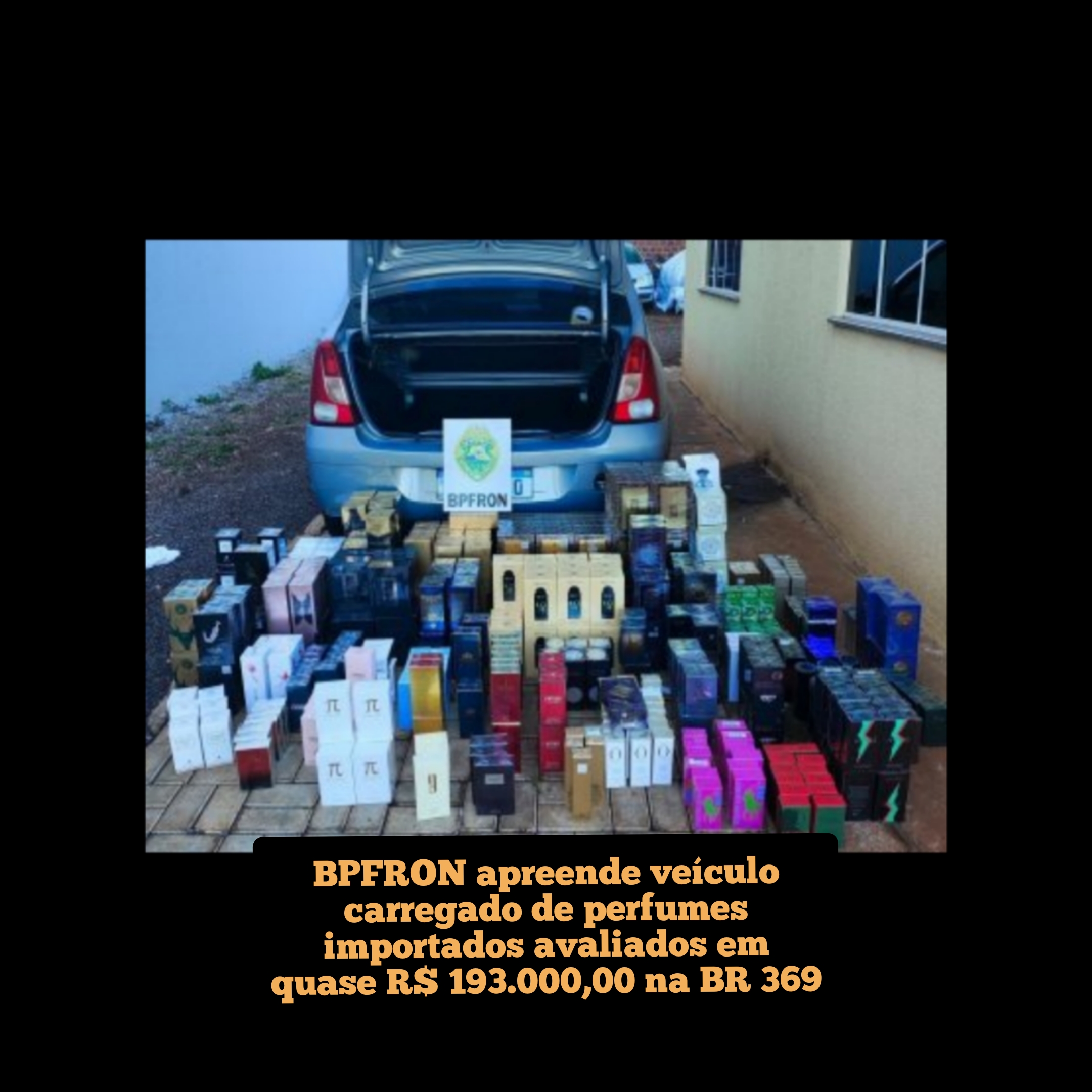Durante a revista veicular foi constatado que no bagageiro do veículo havia diversos itens de perfumaria, sem os devidos trâmites legais.