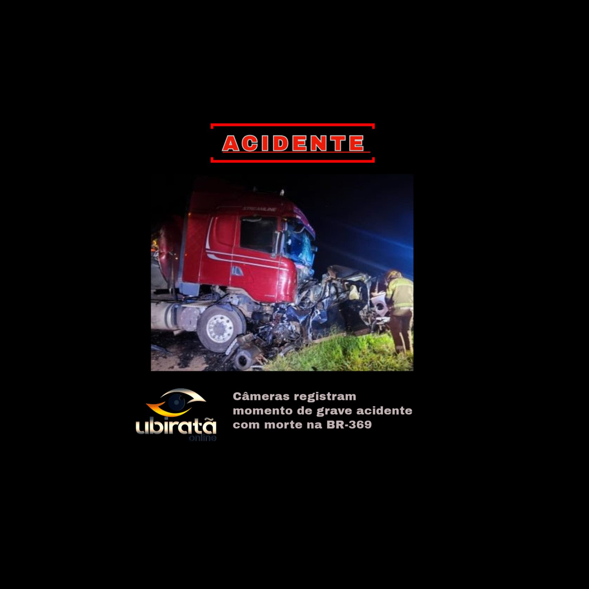 Imagens de câmeras de segurança registraram o exato momento de um grave acidente com morte ocorrido na madrugada desta segunda-feira (12) na BR-369, entre Cascavel e Corbélia.