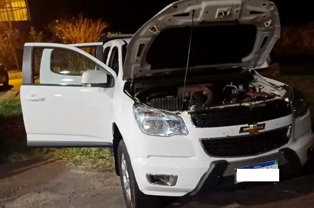 Em seguida, a equipe resolveu observar os detalhes do veículo quando descobriu que as placas estavam trocadas e, na verdade, tratava-se de uma camionete tomada de assalto de uma família da cidade de Goioerê na véspera da passagem de ano.