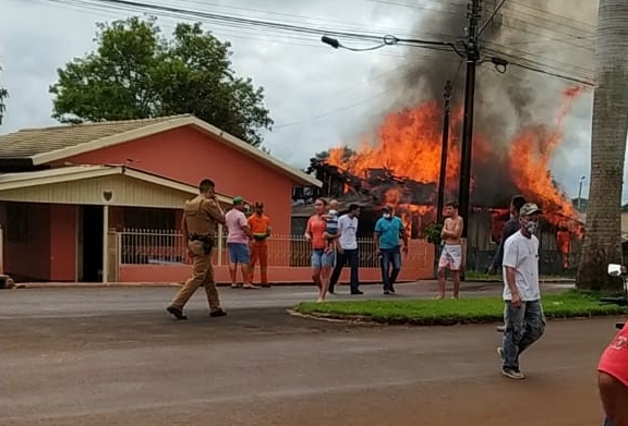 Uma residência de madeira localizada na Avenida Augusto Mendes dos Santos, em Mamborê, foi totalmente destruída pelo fogo na manhã desta terça-feira (05).