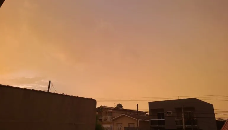 De acordo com o meteorologista Leonardo Furlan, do Sistema de Tecnologia e Monitoramento Ambiental do Paraná (Simepar), a cor laranja no céu nesta segunda foi provocada pela interação da chuva com as nuvens.