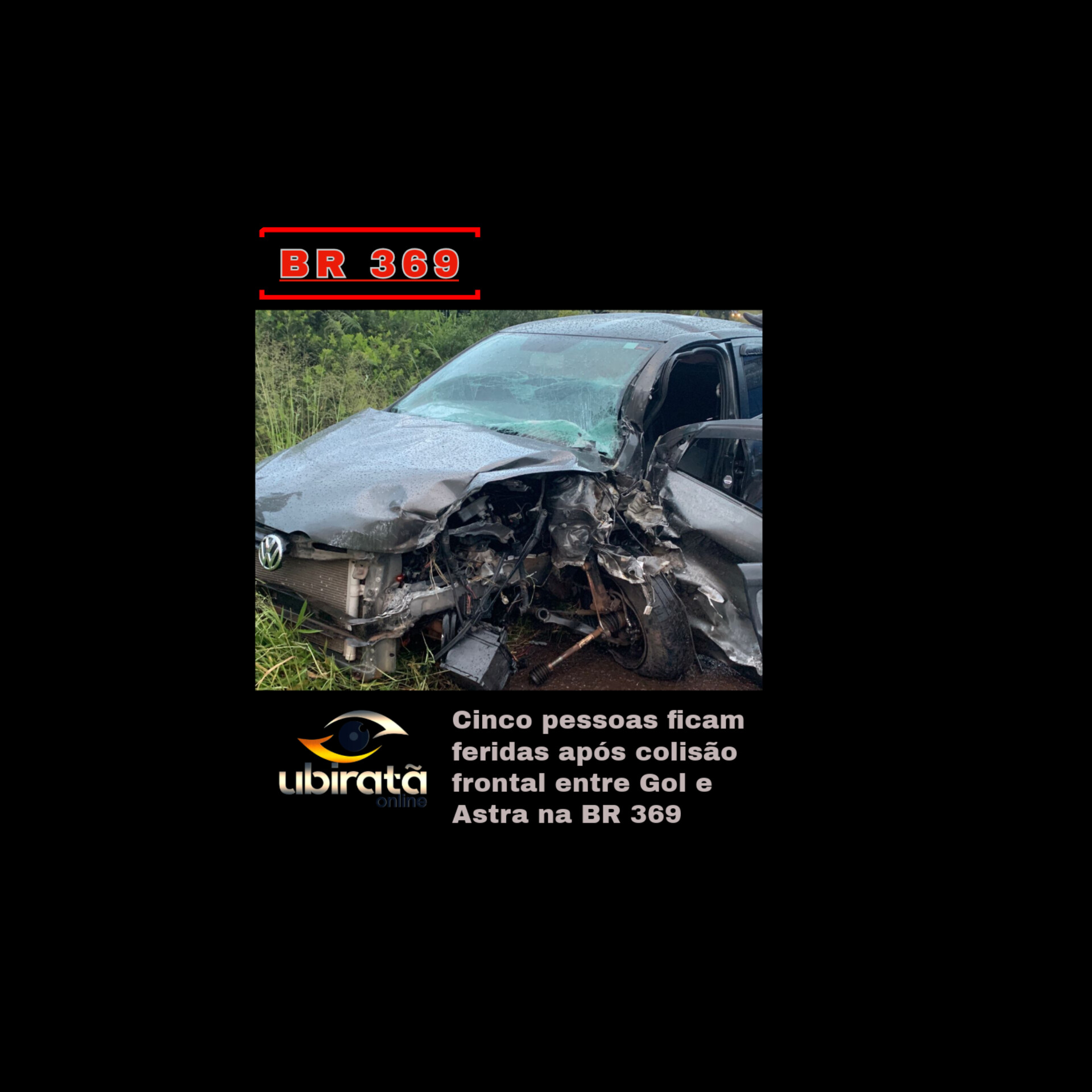 Um acidente grave foi registrado na manhã desta segunda-feira (05) na BR 369, próximo a Cascavel, envolvendo um Astra e um Gol, que seguiam em sentidos opostos. A colisão frontal deixou cinco pessoas feridas.