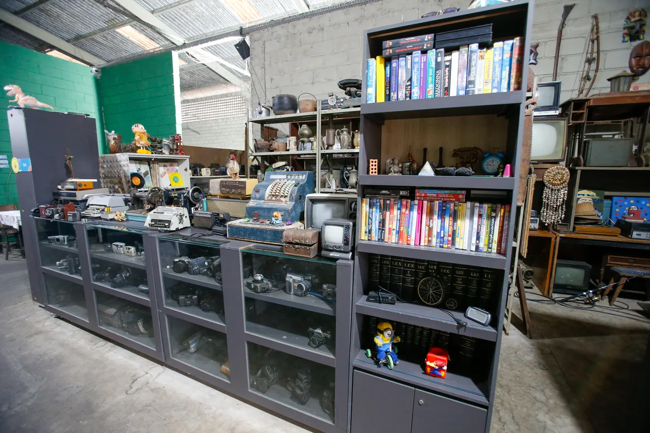 O espaço não é muito grande, mas é capaz de te levar através dos antigos bules para aquele café da tarde na casa da avó, ou para aquela partida de futebol inesquecível narrada naquele antigo rádio do seu pai. Lembra quando era dia de devolver o DVD na locadora para não pagar multa? Ou quando você ia tirar foto com uma câmera analógica e ao revelar só dava para ver os dedos do fotógrafo amador? Entre discos de vinil, calculadoras e ferro de passar, o local é como um santuário da reciclagem.