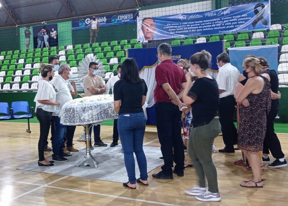 Quando o corpo chegou no Ginásio era grande o número de amigos, colegas de trabalho do Hospital Santa Casa, a classe médica de Goioerê que aguardavam o corpo de Dr. Adilson Corpa em um momento que foi cercado de muita emoção e lembranças.