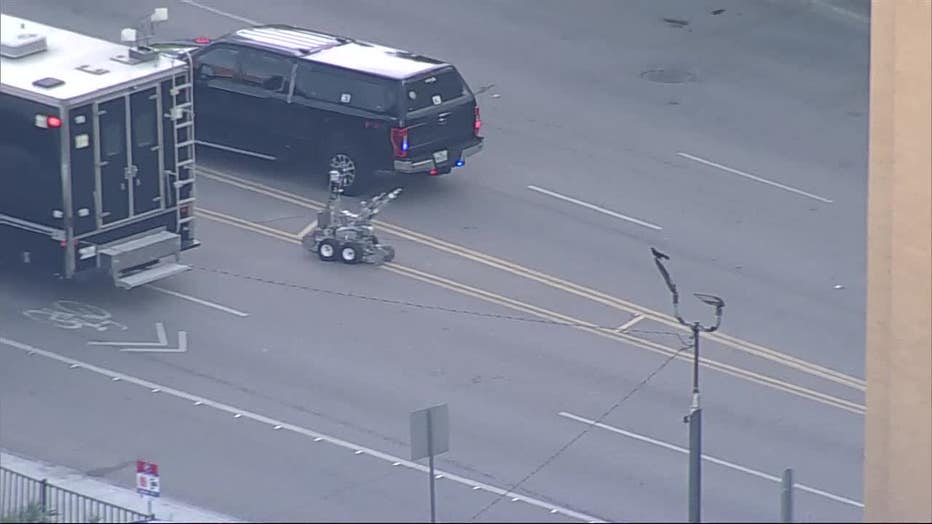 The “suspicious package” being investigated was an SUV parked at the intersection. It is unclear if the suspicious package was the SUV or something inside the vehicle.