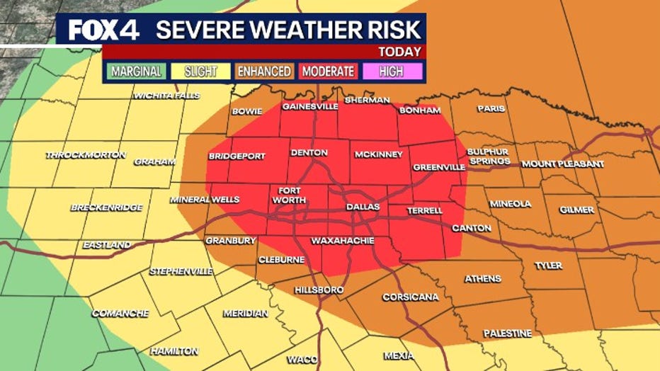 FOX 4 Weather Meteorologist Berkeley Taylor talks about the upgraded risk for severe weather in Dallas-Fort Worth on Tuesday evening, including possible large hail.