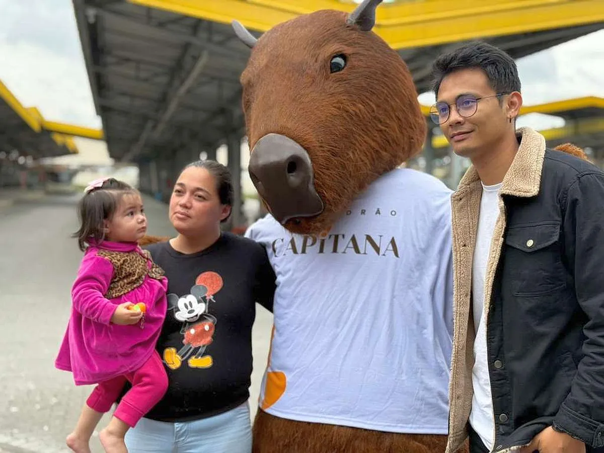 Bastou a mascote acenar e dar os primeiros passos pelo local para o susto virar encanto — e a tímida Lívia abrir um sorriso. Mas não foi só ela. De longe, passageiros de todas as idades deixavam o fluxo de lado para registrar o momento com a capivara gigante que desfilava pelo terminal. Teve selfie, abraço e até dancinha improvisada ao lado das crianças.