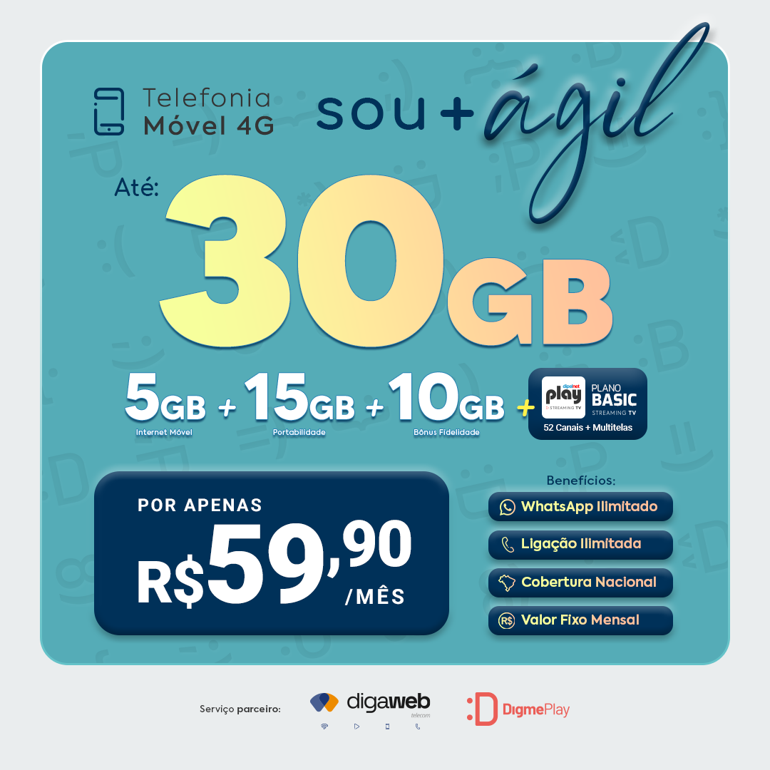 Contrate agora mesmo o plano Sou + Ágil e ganhe até 30GB para navegar como quiser.