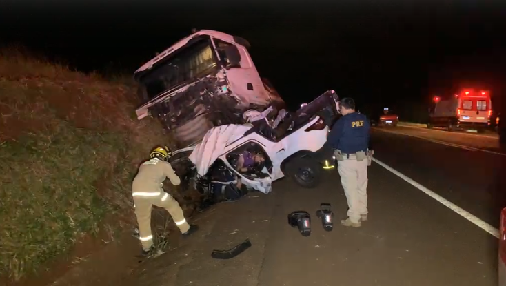 Os ocupantes do Fiat Strada não resistiram à gravidade dos ferimentos e morreram no local. Os condutores da carreta e da Fiorino não se feriram.