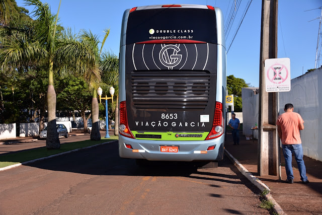 sequência o ônibus de turismo da Viação Garcia com 38 passageiros,