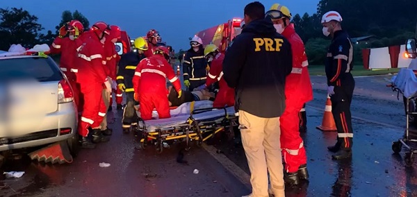 Equipes da PRF (Polícia Rodoviária Federal), ABTR (Auto Bomba Tanque e Resgate), duas ambulâncias do Siate e uma do Samu, Oficial de Área e médico do Siate atenderam a ocorrência.