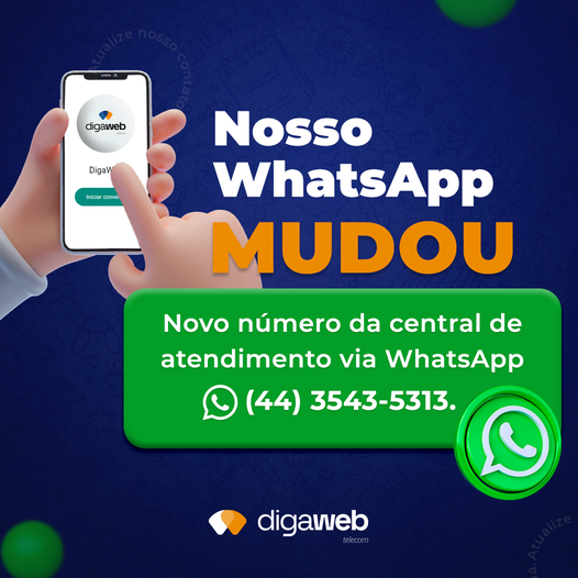 MUDAMOS nosso número da central de atendimento via WhatsApp. Estamos atendendo pelo (44) 3543 5313