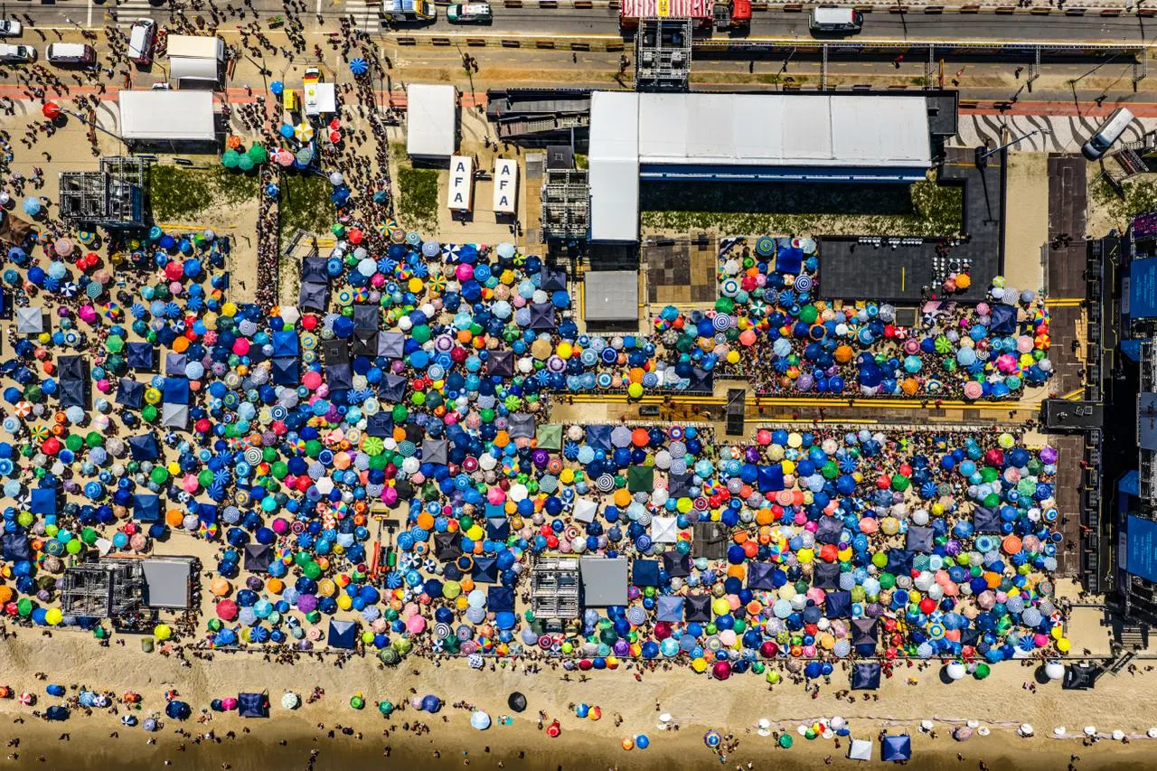 Ao longo desta tarde, a praia se transformou em um grande acampamento de guarda-sóis espalhados pela orla. Entre os grupos que tentam garantir um lugar privilegiado estão cinco amigas de Curitiba. Desde as 11h, elas permanecem na areia.