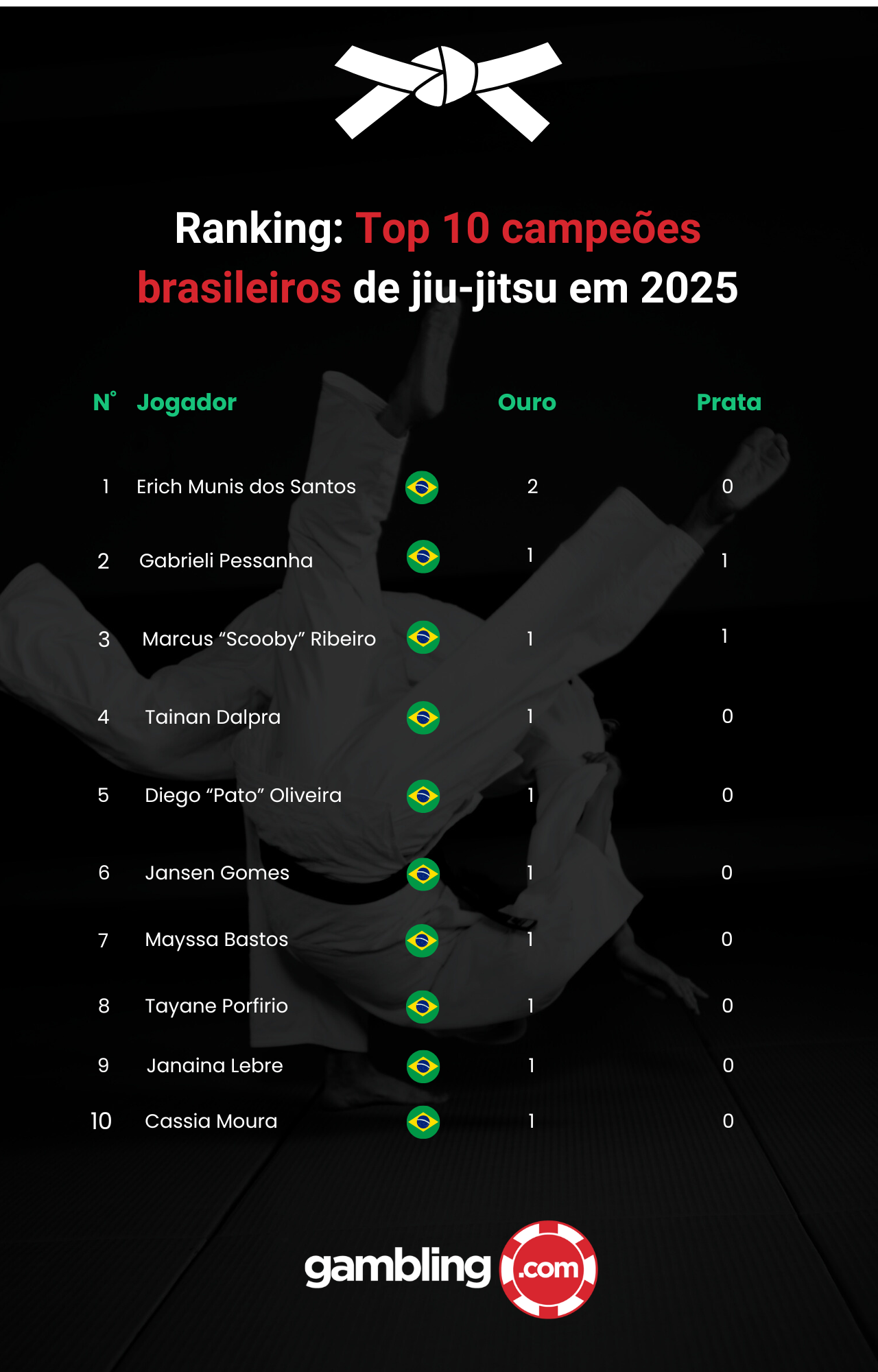 O Brasil não é apenas o centro do jiu-jitsu brasileiro (BJJ), mas também o centro de sua evolução competitiva. Em 2025, os atletas brasileiros demonstrarão mais uma vez sua supremacia nos campeonatos mundiais, especialmente no prestigiado Campeonato Brasileiro de Jiu-Jitsu (Brasileiro), organizado pela IBJJF. A Gambling.com, líder em serviços de marketing digital para o setor de jogos online, realizou uma análise que permitiu um ranking dos 20 campeões brasileiros mais proeminentes do ano, seus títulos, estilos e o impacto que estão tendo no cenário global do BJJ.