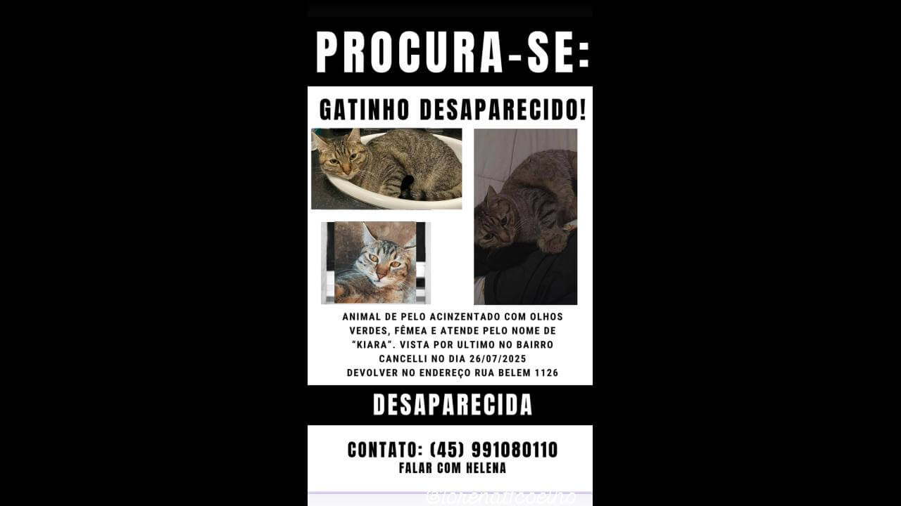 Quem encontrar ou tiver informações, pode entrar em contato com o número (45) 99108-0110.