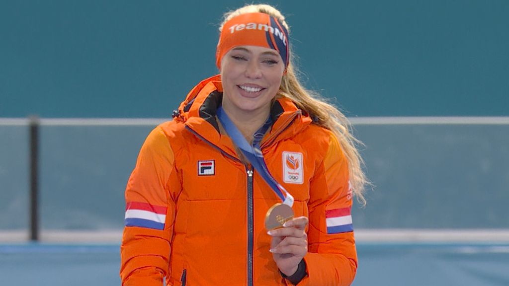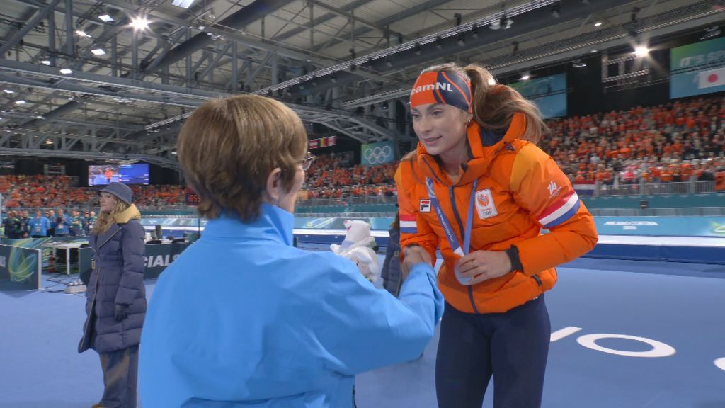 Femke Kok krijgt het zilver omgehangen in Milaan, de eerste Nederlandse medaille op deze Spelen. Meteen hierna zien we ook het eerste goud, voor Jutta Leerdam.
