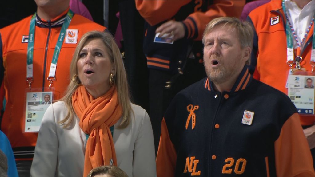 Koning Willem-Alexander en koningin Maxima zingen mee met het Wilhelmus -