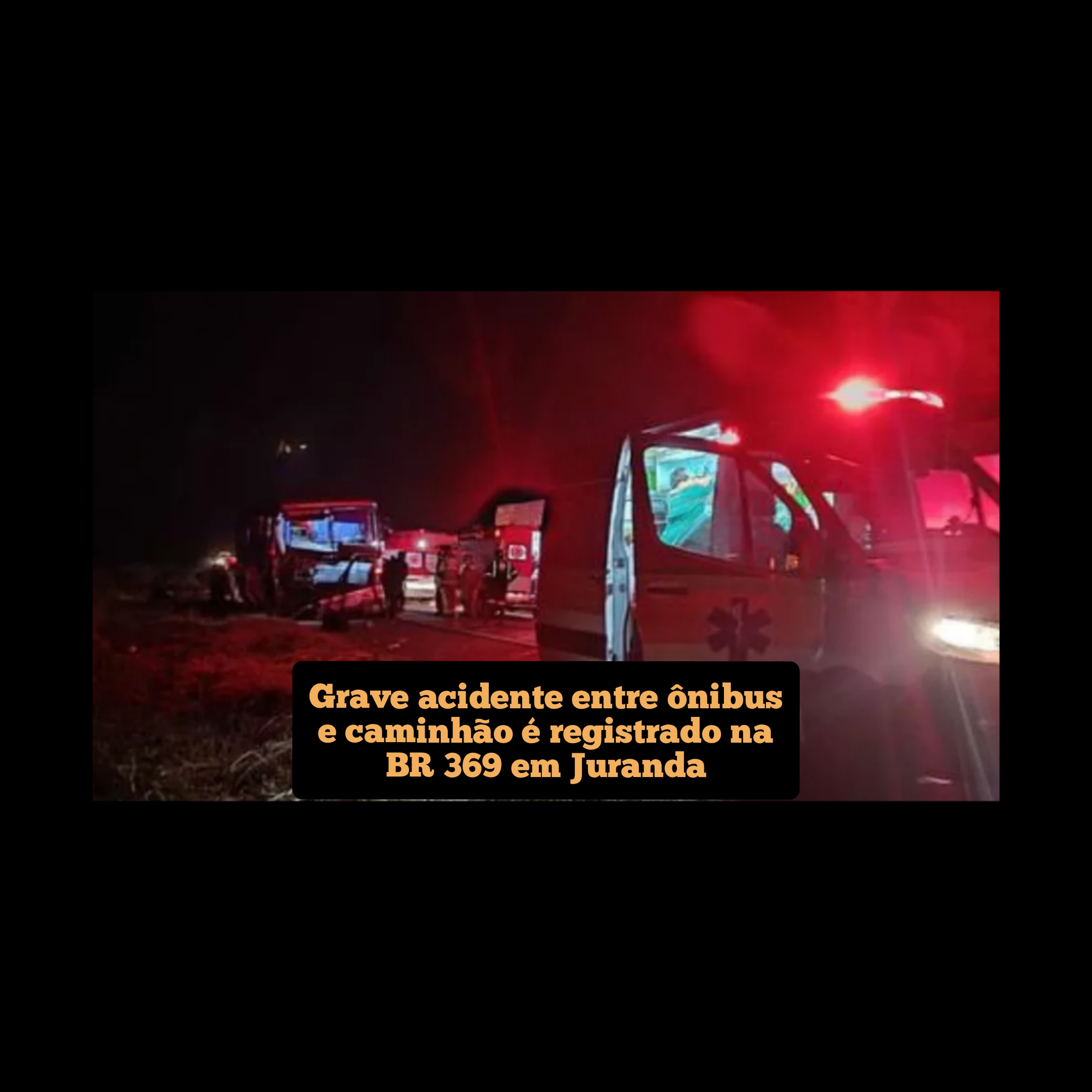 Um gravíssimo acidente foi registrado na BR-369, nas proximidades do município de Juranda, envolvendo um ônibus e um caminhão. A batida ocorreu em frente a um posto de combustível, onde um ônibus carregado com mercadorias oriundas do Paraguai bateu na traseira de um caminhão.