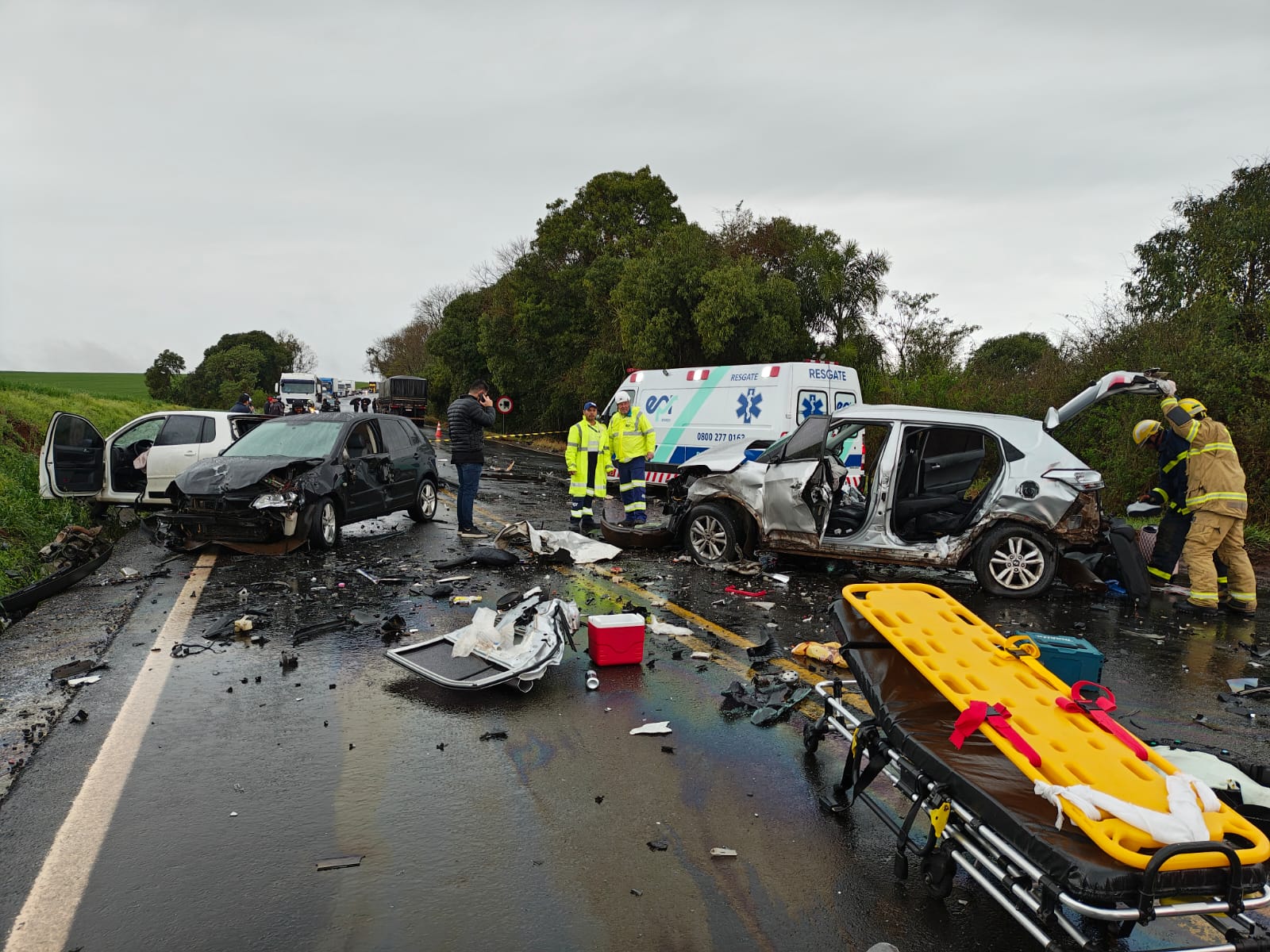 Um grave acidente de trânsito foi registrado na tarde deste domingo (24), por volta das 15h50, na rodovia PRC-280, no trecho entre Renascença e Vitorino. A colisão envolveu dois automóveis VW/Polo, um Hyundai/Creta e um caminhão que tracionava uma carreta.