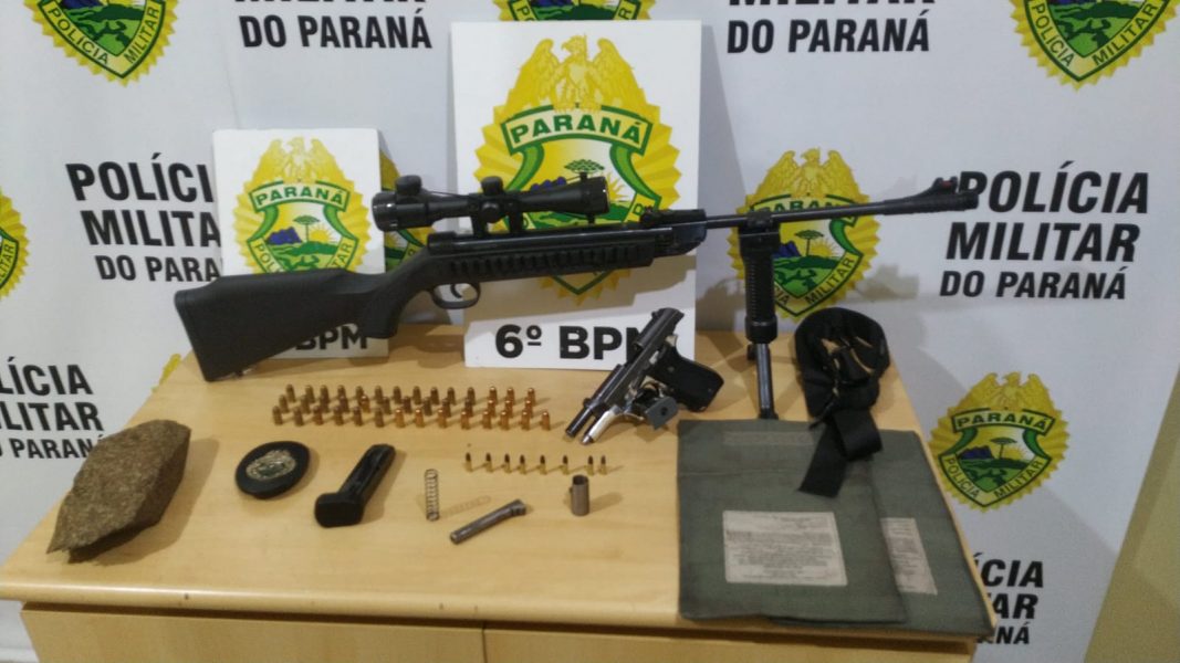 Ainda na ação da PM, o homem alegou ter mais uma arma, quando foi localizada uma espingarda alterada para utilização munição de calibre .22, cerca de 379 gramas de maconha e 49 munições.