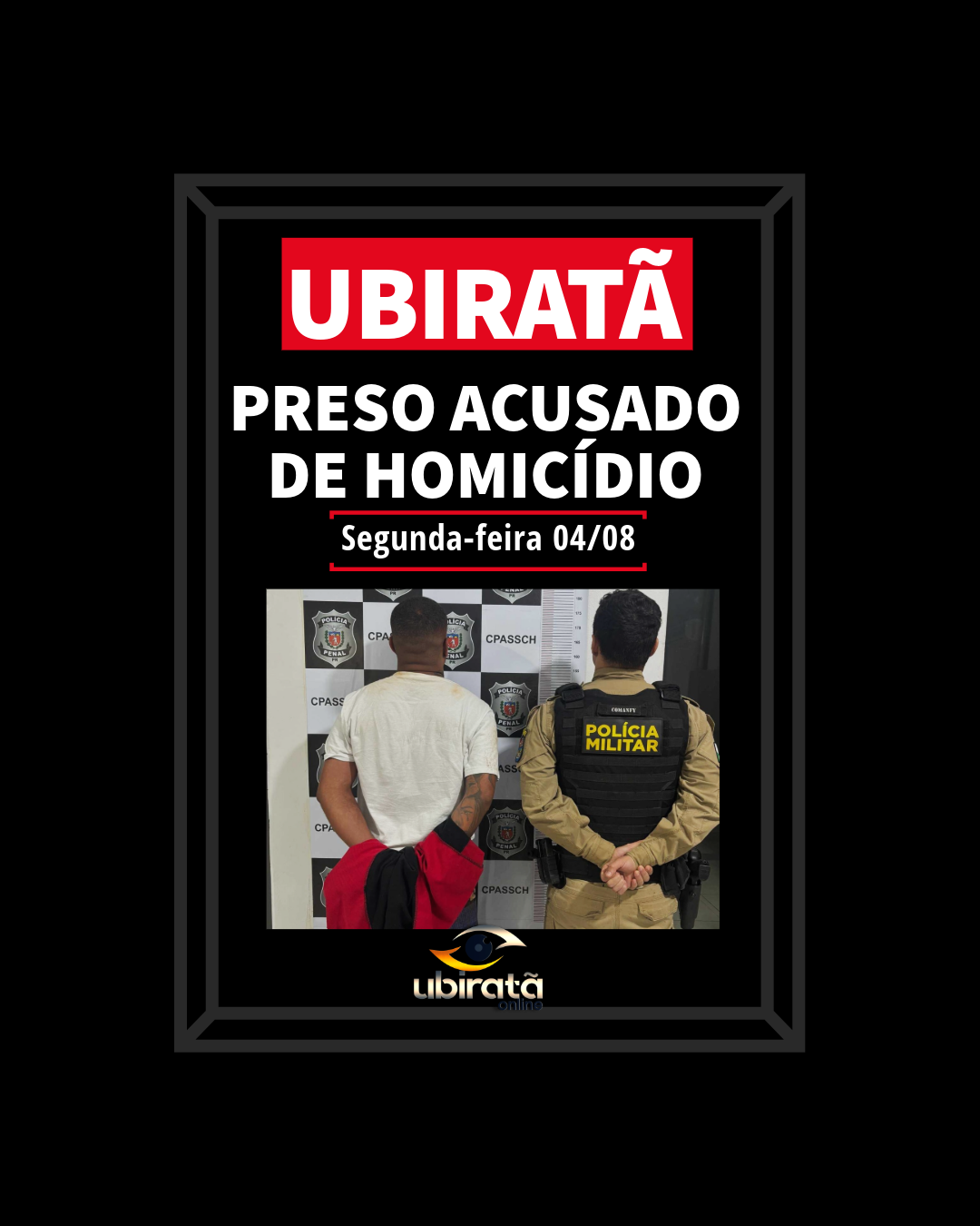 Na tarde desta segunda-feira (04), por volta das 15h, a Polícia Militar de Ubiratã prendeu um homem de 26 anos com mandado de prisão preventiva em aberto, referente a um processo de homicídio no estado de São Paulo.
