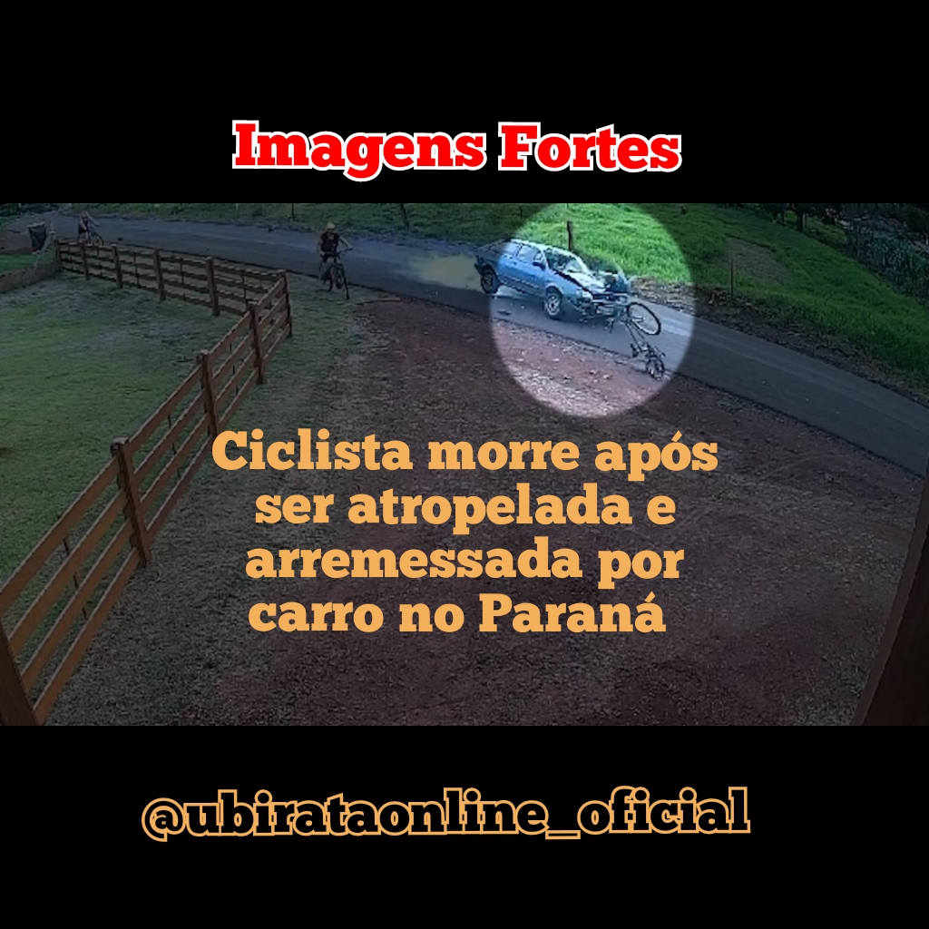Pela imagem é possível notar a força do impacto, o corpo e a bicicleta da vítima são carregados no capô do carro e arremessados após 40 metros de distância de onde aconteceu a batida. O para-brisa do veículo ficou totalmente destruído.