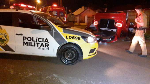 Em fuga, na Avenida das Pombas, o motorista furou preferenciais e também semáforos colocando em risco a vida dos que trafegavam na área. Após diversas manobras, já no Bairro Floresta o condutor perdeu o controle da direção e capotou.