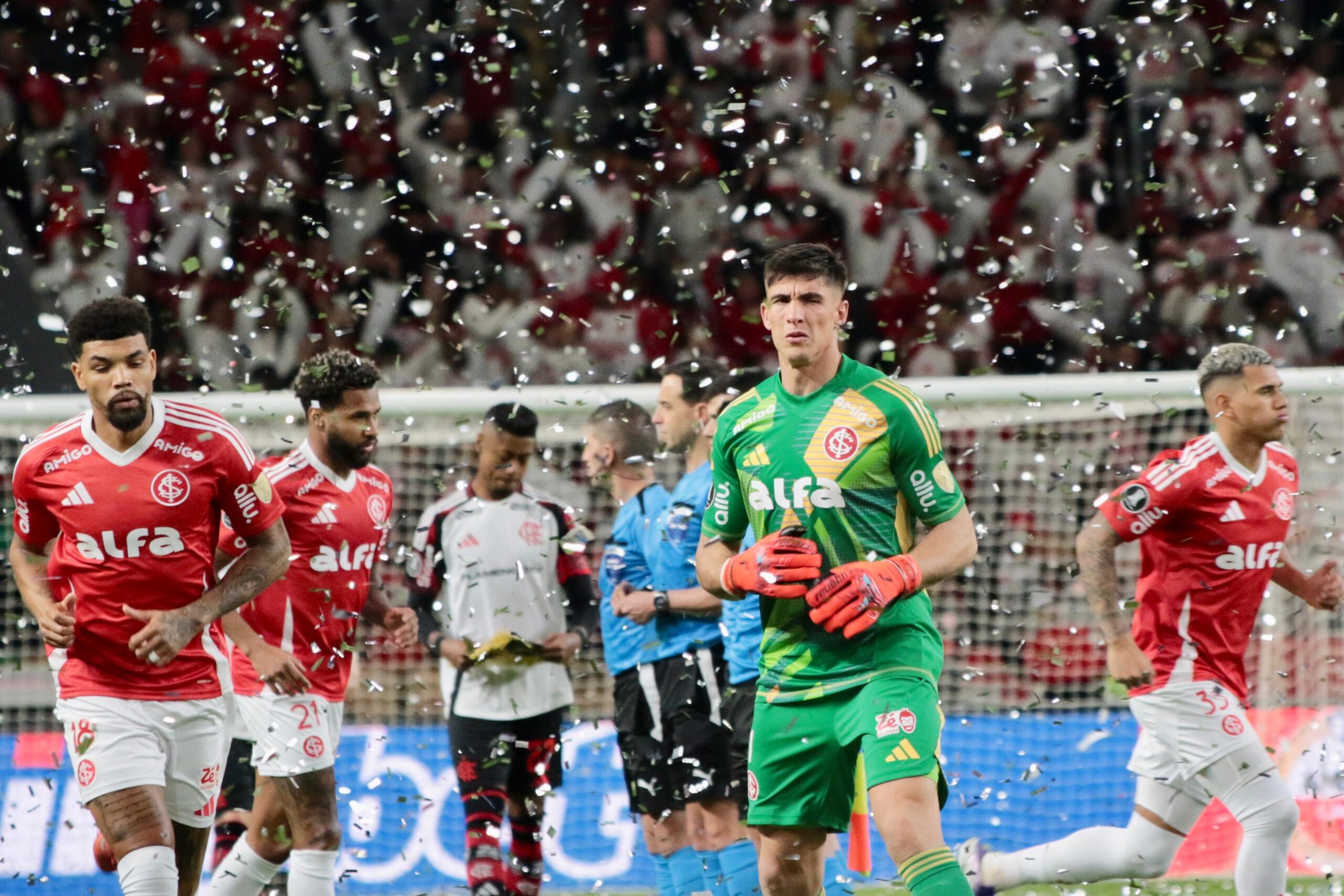 “Sobre o episódio dos papéis picados, o Inter informa que projetou a ambientação de jogo para recepcionar o time e a torcida no duelo contra o Flamengo, pelas oitavas de final da Libertadores, com ações como CO² nas laterais e atrás das goleiras, balões tubulares em áreas do estádio e bandeirões das torcidas organizadas, além do papel picado, todos devidamente previstos e liberados pelo regulamento da Conmebol. Entretanto, a ação deveria ter ocorrido em outro setor do estádio, em menor volume e sem o material prateado. Apuramos internamente que foram tomadas decisões não autorizadas pelo Clube na execução da ação. Os responsáveis foram identificados e as medidas cabíveis já foram aplicadas.”