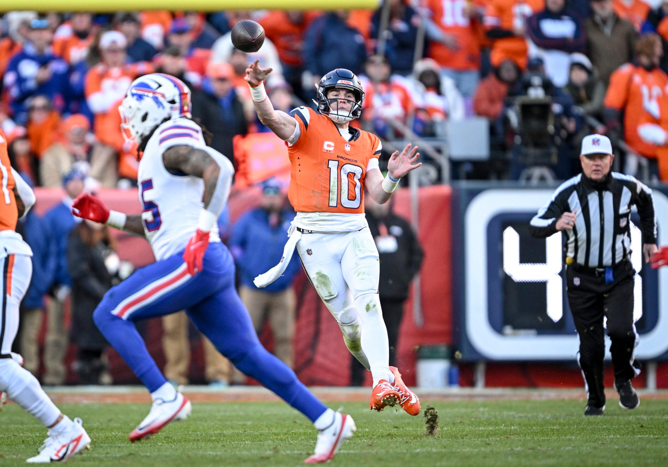 And they would have loved for Allen to finally get the AFC title and Super Bowl appearance they’ve been chasing together. Instead, they’ll have to watch a far less accomplished quarterback represent the AFC in Santa Clara—and it won’t be Nix, who, outside of a baffling third-quarter interception to a defensive tackle, played well against Buffalo, throwing for 279 yards and three touchdowns. The Broncos’ second-year quarterback broke a bone in his right ankle on the second-to-last play of overtime. Denver head coach Sean Payton announced the news Saturday evening as reporters waited for Nix’s appearance at the podium.