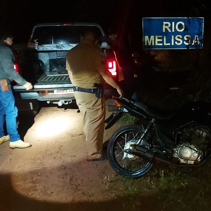 A polícia militar de Cafelândia foi acionada por volta das 22:20 hs desta segunda feira, 04, para verificar uma situação de uma moto encontrada dentro do Rio Melissa (embaixo da ponte), ao chegar ao local a moto foi retirada e encaminhada para o destacamento (não há registro de furto).