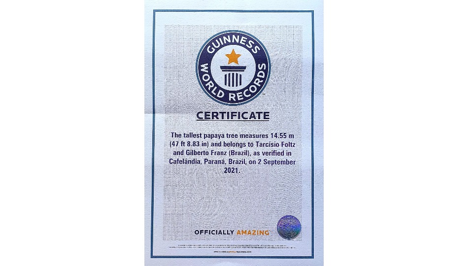 “O sentimento é de felicidade e alegria em compartilhar as informações e as imagens do mais alto pé de mamão do planeta. Esse recorde não é somente meu e sim, das pessoas que moram na região, principalmente de Cafelândia, minha cidade natal, e poder levar o nome da cidade a ser conhecida no mundo”, revelou à reportagem.