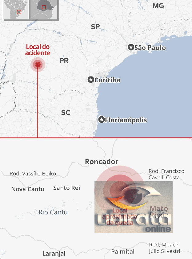 A aeronave viajava de Goioerê, para Guaratuba, no litoral. Após a queda, o avião foi encontrado dentro de um rio, na área rural de Mato Rico.