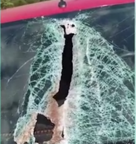 A peça atingiu a parte do meio do para-brisa e entrou no veículo, quase atingindo as duas. “Foi um milagre, pois se eu tivesse tentado desviar, a peça poderia ter me atingido ou atingido minha cunhada”, relatou.