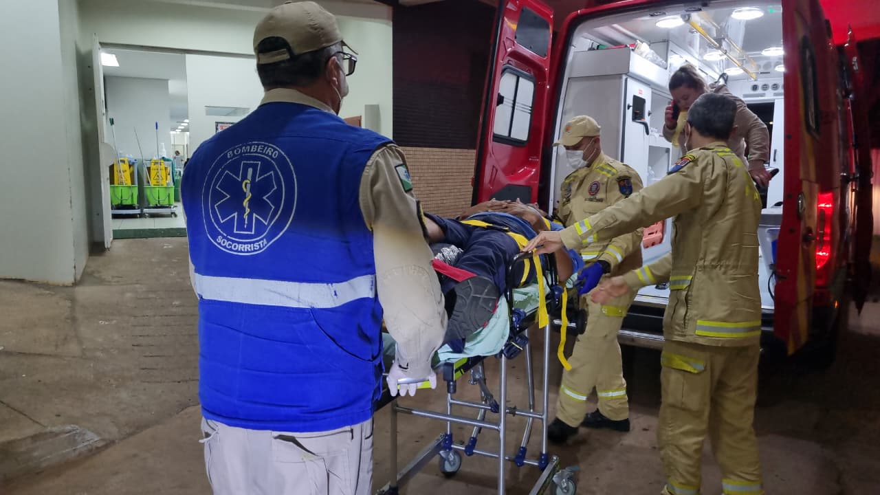 O motociclista sofreu a queda e ficou ferido. O homem apresentava luxação no joelho e seria reavaliado na UPA Tancredo Neves.