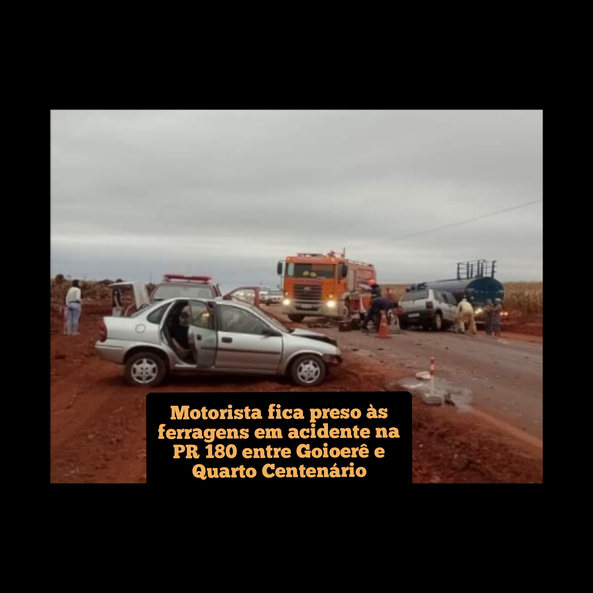 Um motorista ficou preso às ferragens após colisão envolvendo um Corsa e um Uno na PR 180 no final da tarde deste sábado (18), entre as cidades de Goioerê e Quarto Centenário.